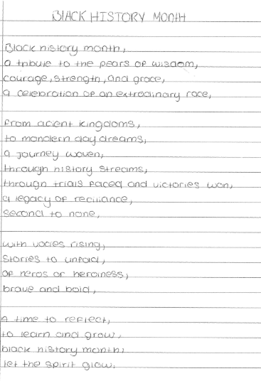 One of the most exciting BHM celebrations was the school-wide poetry competition, for which students were tasked with creating and presenting poems to mark this year’s theme of ‘Standing Firm in Power and Pride’. Congratulations to our winners and to everyone who got involved!